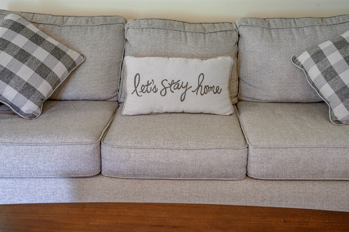 The bright and spacious kitchen is open to the dining and living room areas. Sliding door leads to large, private deck with outdoor seating area and grill. Fully stocked kitchen has electric oven range, instapot, microwave, DeLonghi Coffee Maker with espresso and steam. The cozy living room features a wood stove and smart TV. High Speed internet wifi available.